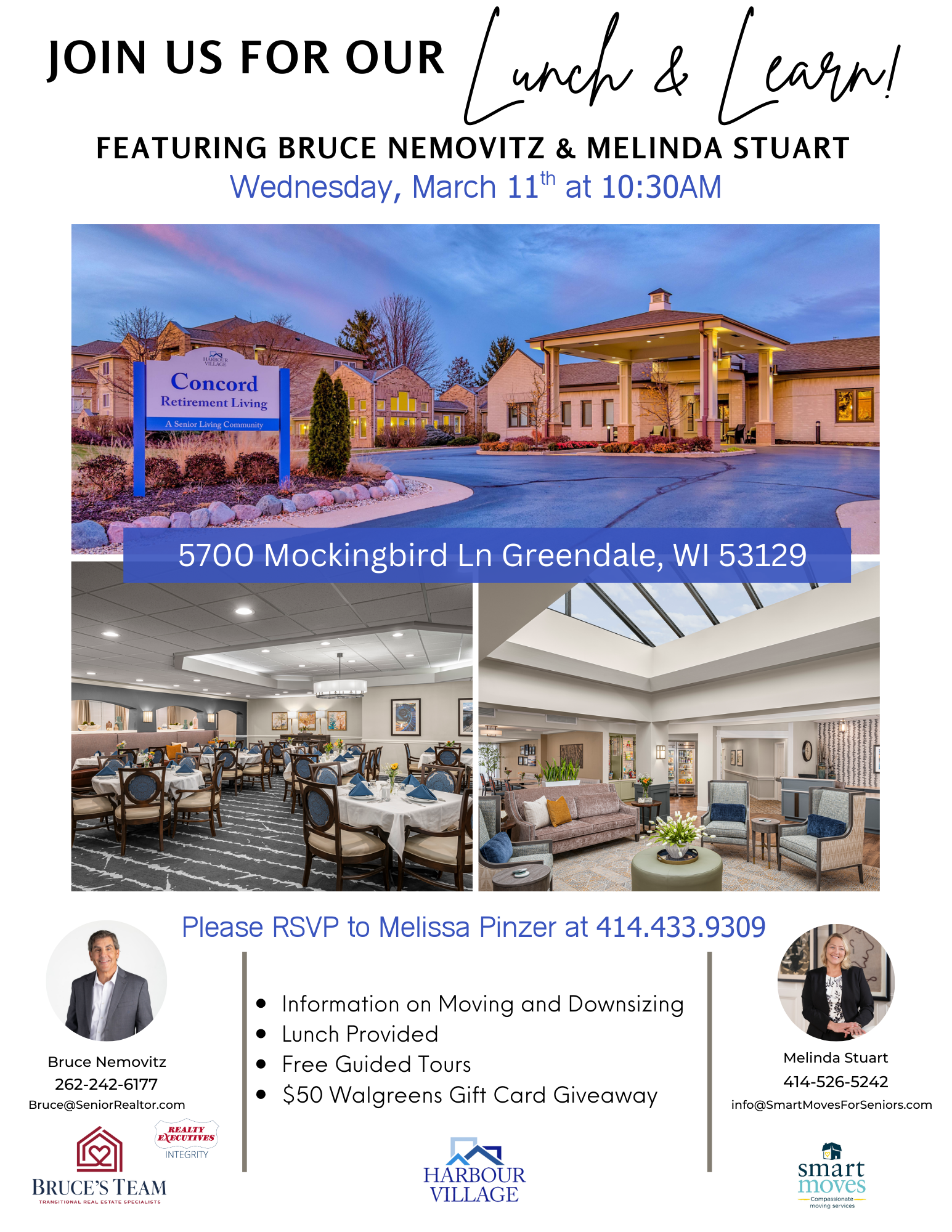 Harbour Village Wednesday, March 11, 2026 10:30 AM 11:30 AM Concord Retirement Living 5700 Mockingbird Lane Greendale, WI, 53129 United States (map) Google Calendar ICS